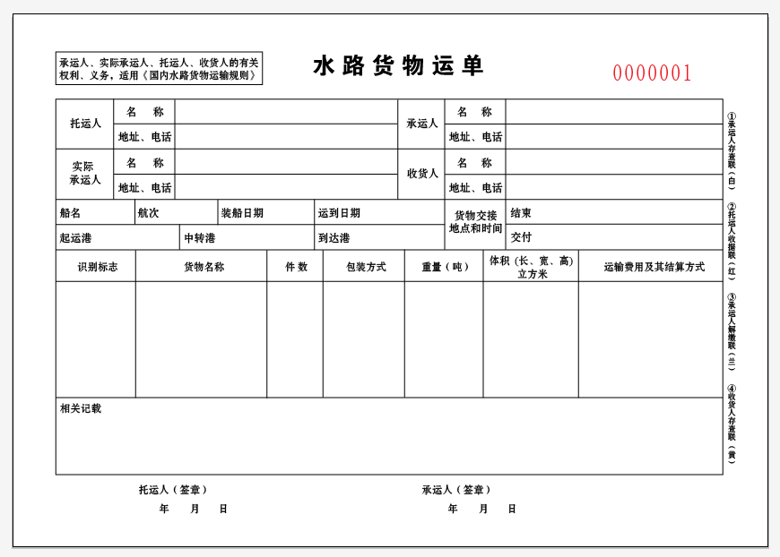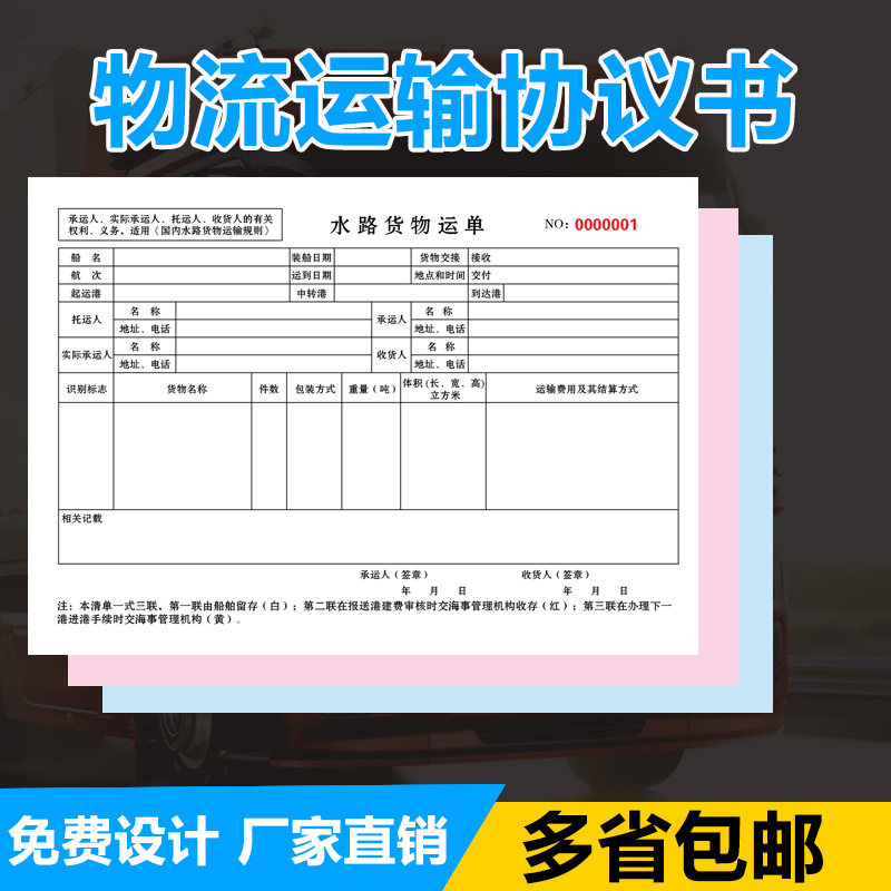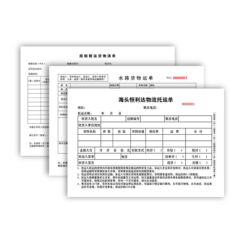 Waterway cargo waybill ship list logistics consignment note repair order sales order delivery note contract agreement printing