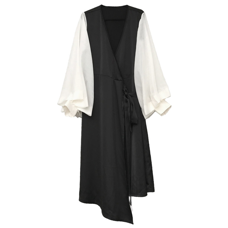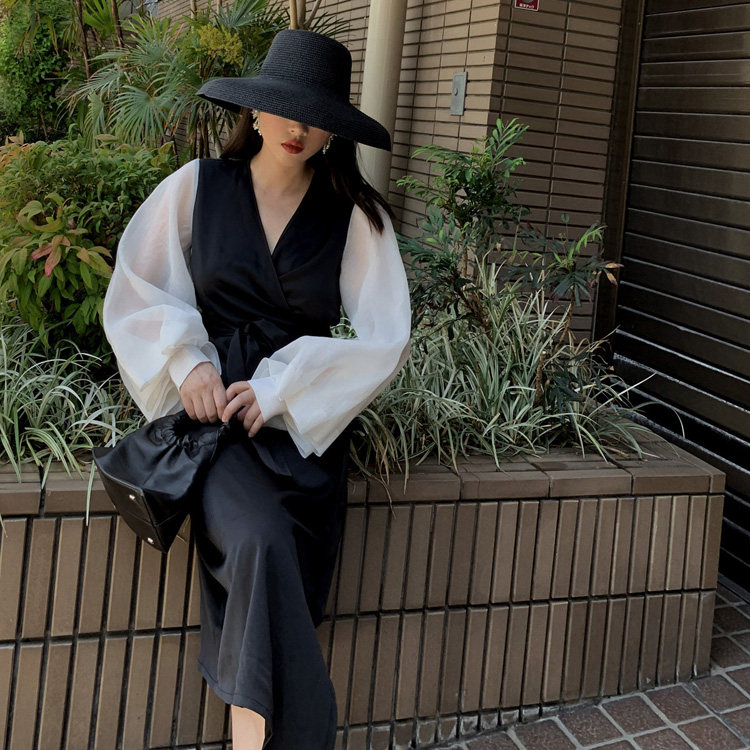 (LAMBO exclusive @special) Very waste, super three-dimensional petals, folded sleeves, color matching, kimono-style dress