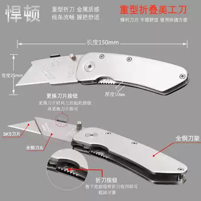 Xiaoheng stainless steel heavy-duty folding utility knife Paper cutting wallpaper knife Carpet cutter Cable peeling peeling blade
