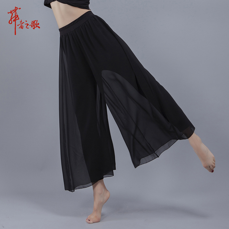 Modern Dance Mesh Yarn High Waist Pants Dance Practice Pants Snow Spinning Fake Two Pieces Yoga Broadlegged Pants Skirt Long Pants