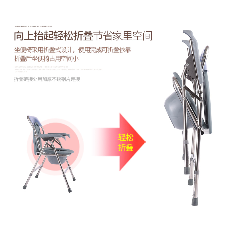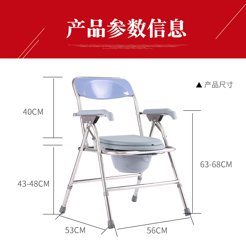 Elderly stainless steel foldable adjustable toilet toilet chair device Mobile toilet Household maternal and disabled bath stool