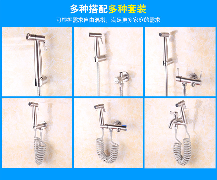 304 Stainless Steel Toilet Flush Spray Gun Partner Set Telescopic Pipe Women's Wash Sprayer High Pressure Booster Makeup Room