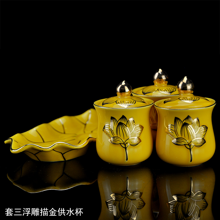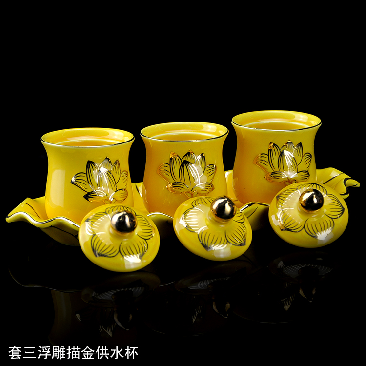 Trekking lotus flower for water glasses white no lid lotus Three continuous supply ink system water glass white Buddhist monk 3 continuous ink system water glass white cover triple sketching gold lotus for water glass yellow
