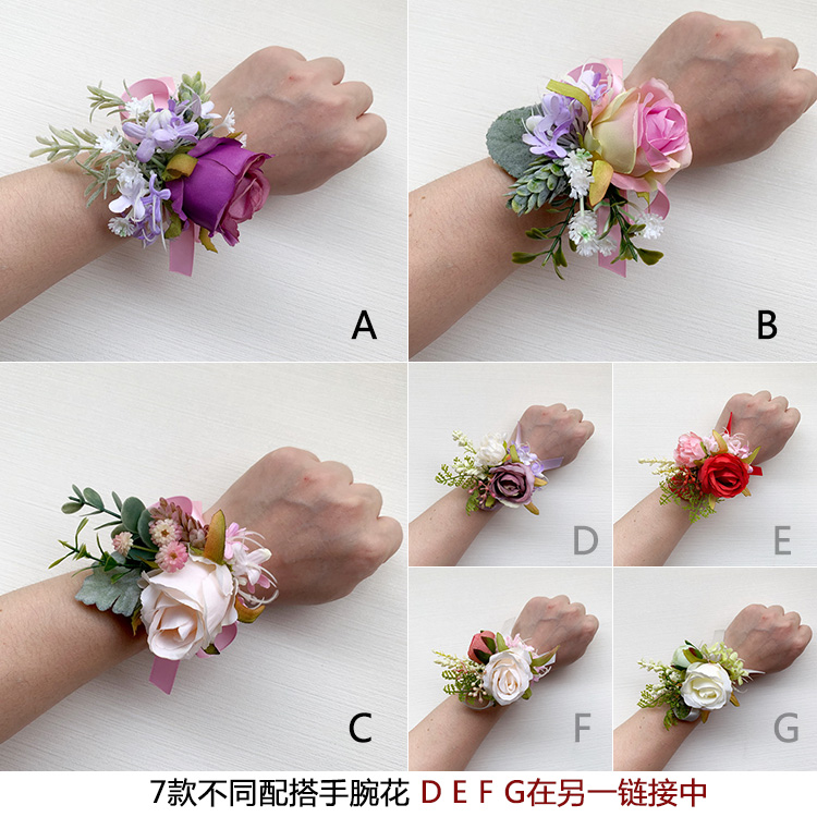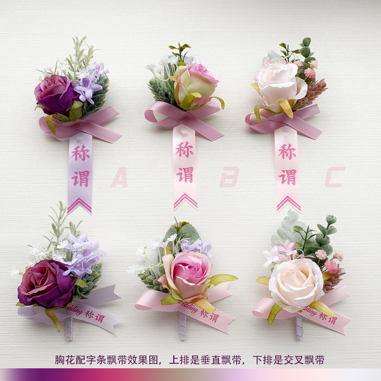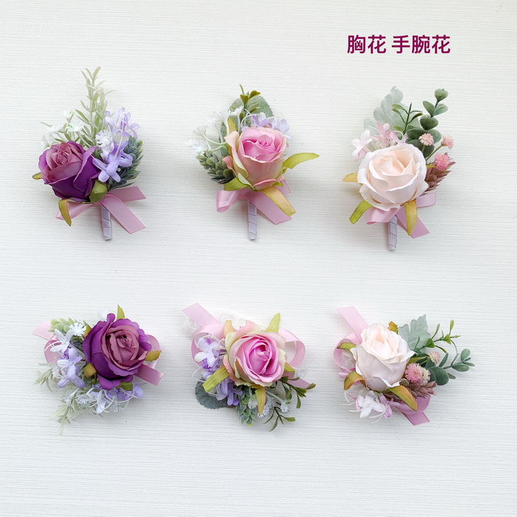 Purple pink series Wedding bride and groom simulation filigree flower corsage Wrist flower lapel flower Wedding gift ceremony celebration opening