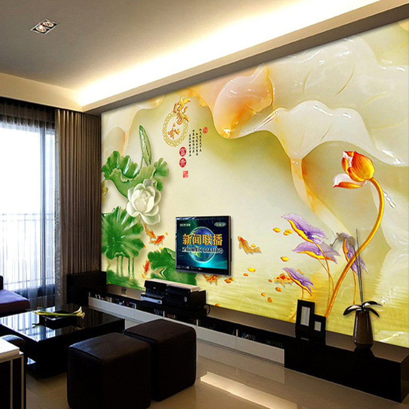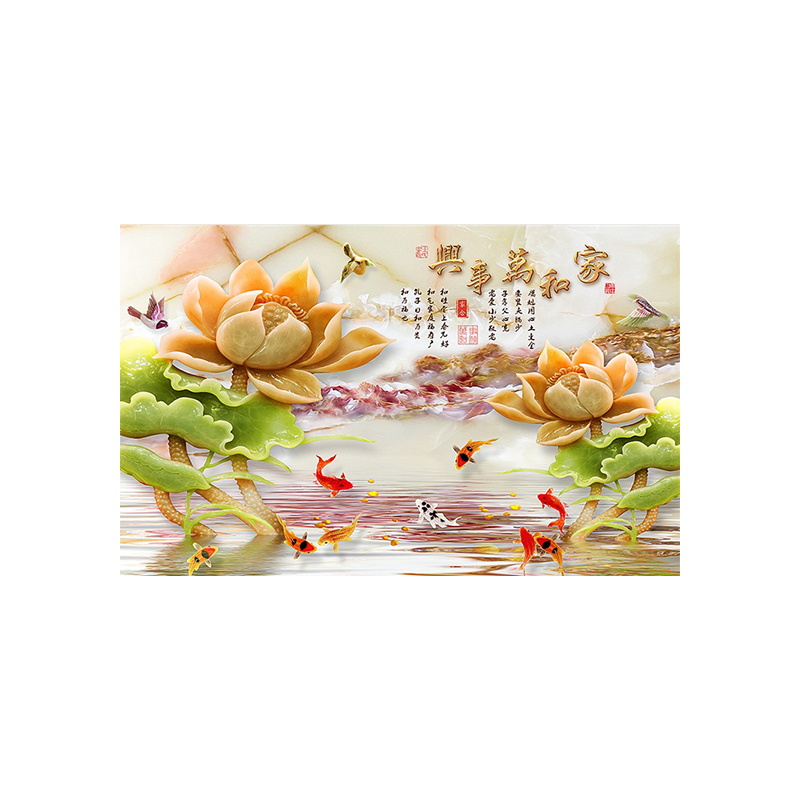 Bamboo-wood fiber integrated board wall painting Chinese 5d8d rugged jade sculpture TV background wall panel 3d mural drawing room assembled