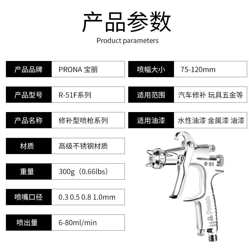 Taiwan prona Baoli round spray R51-F fan-shaped spray gun small area small caliber repair spray gun