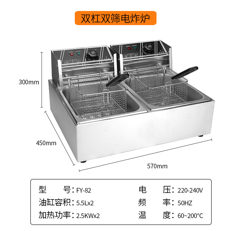 Laiyang fryer commercial double-cylinder electric fryer fried string stall electric fryer single-cylinder large-capacity French fries fritters deep-fried