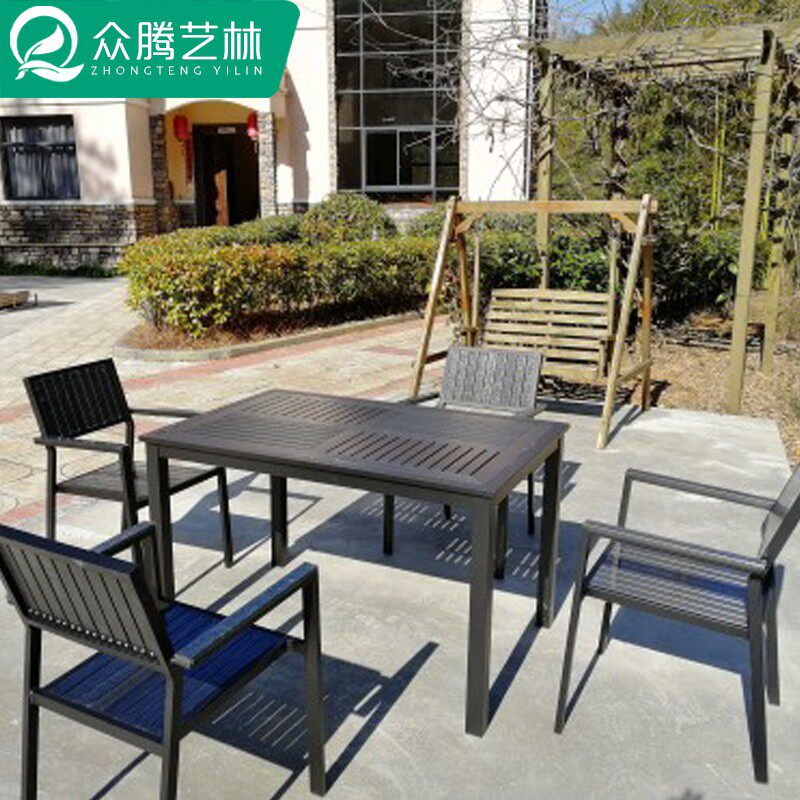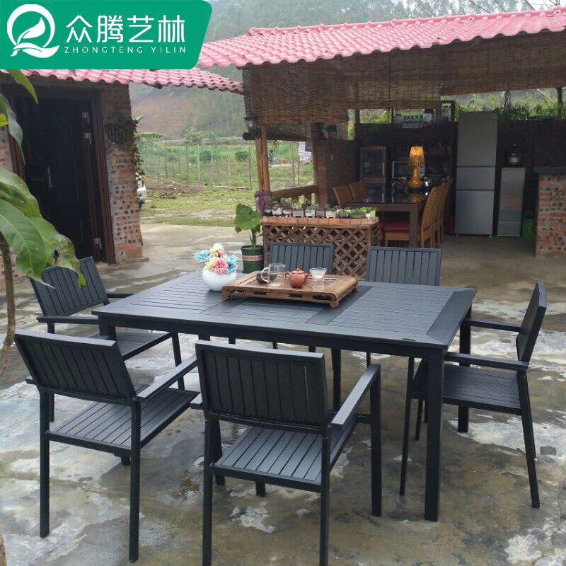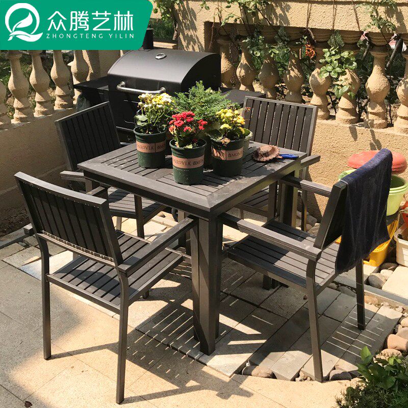 Outdoor Plastic Wood Table And Chairs Patio Terrace Terrace Embalming Wood Outdoor Garden Terrace Waterproof Sunscreen Cafe Casual Table and chairs