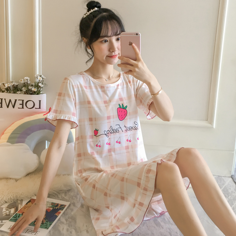 ins wind sweet princess wind Rainbow cat night dress Women's summer pajamas thin Korean version of the student short-sleeved cute