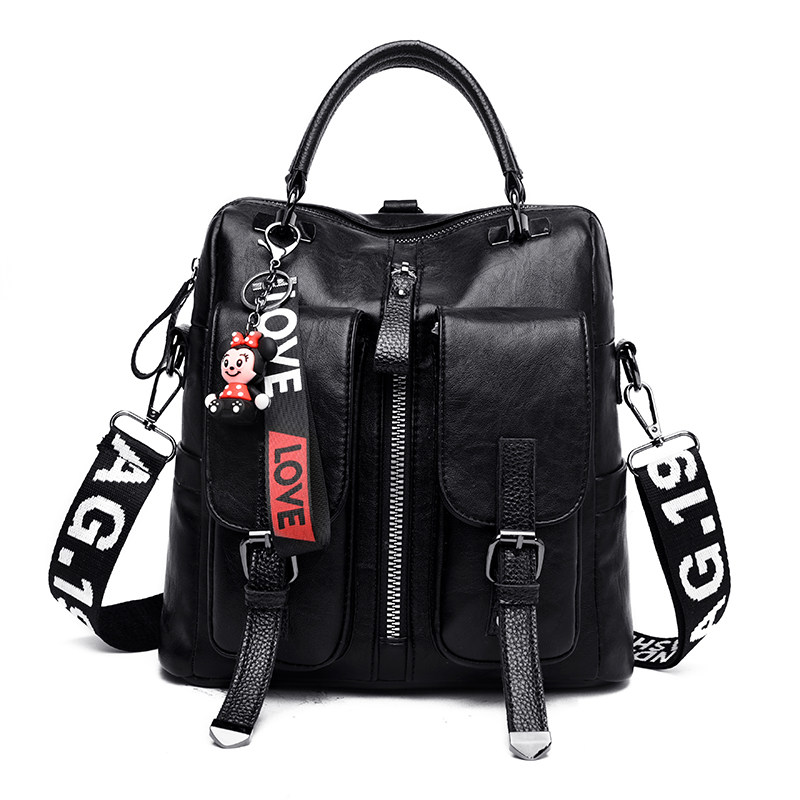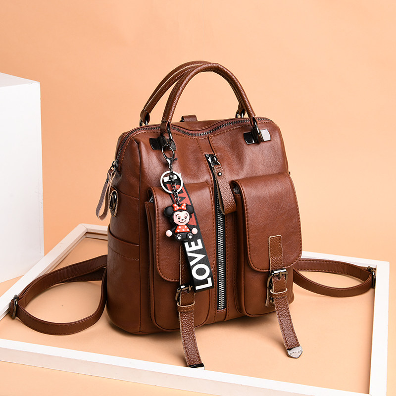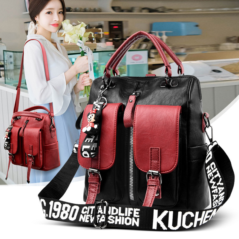 Double shoulder bag women's bag soft leather 2021 new versatile fashion shoulder messenger bag three-way bag with leather multi-purpose bag