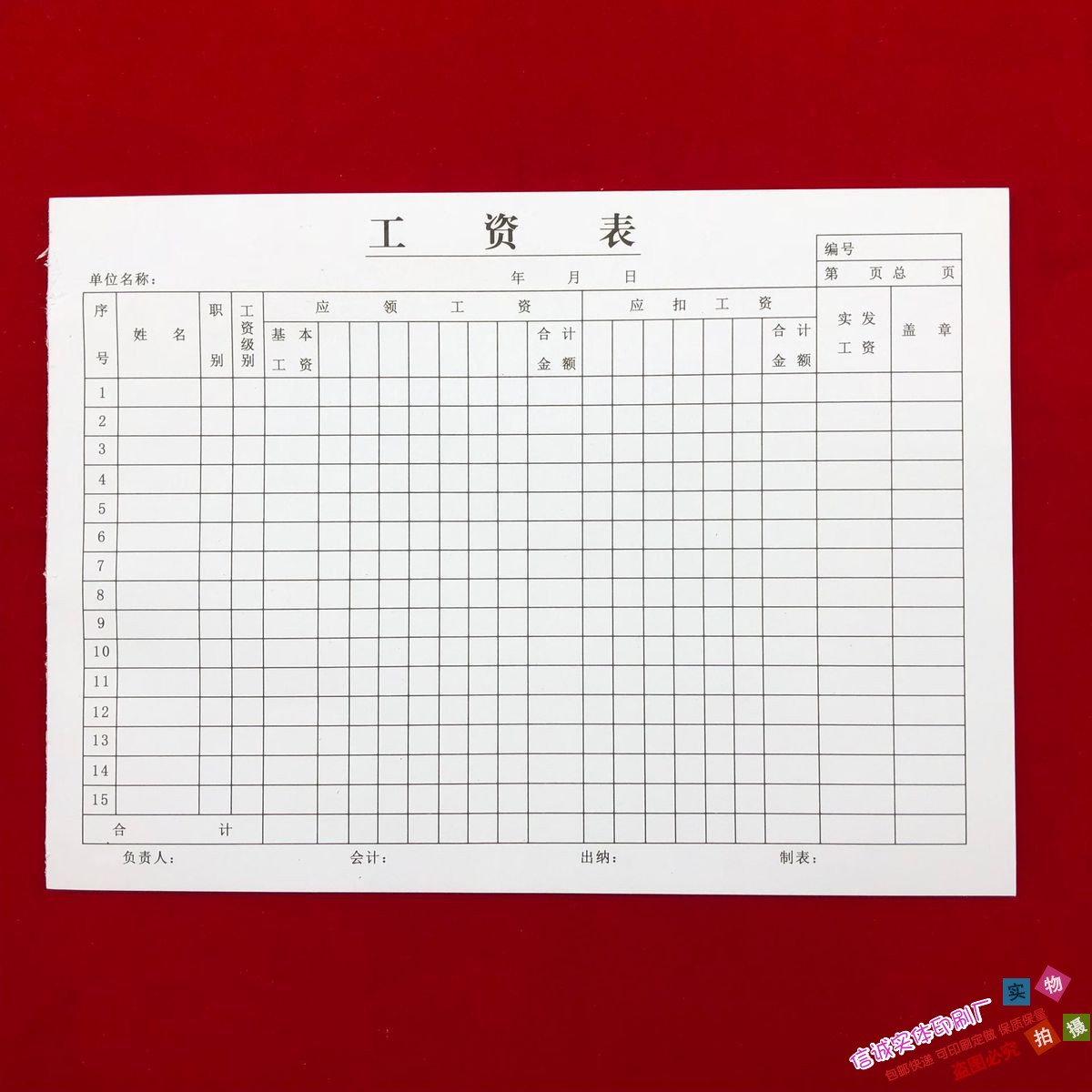 A salary payment form for salary payment payroll of a special staff member of the financial accounting form
