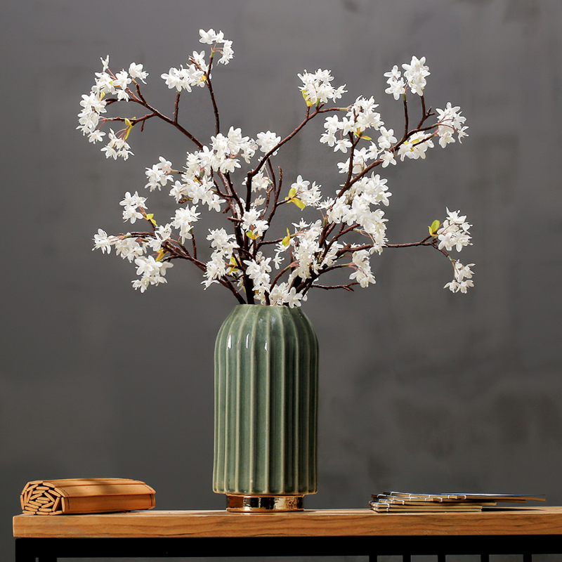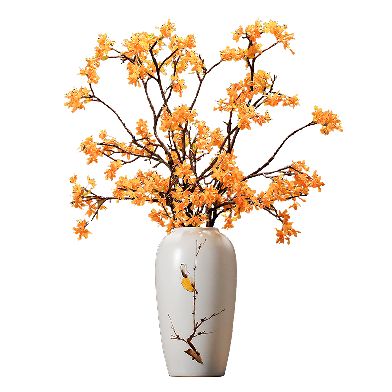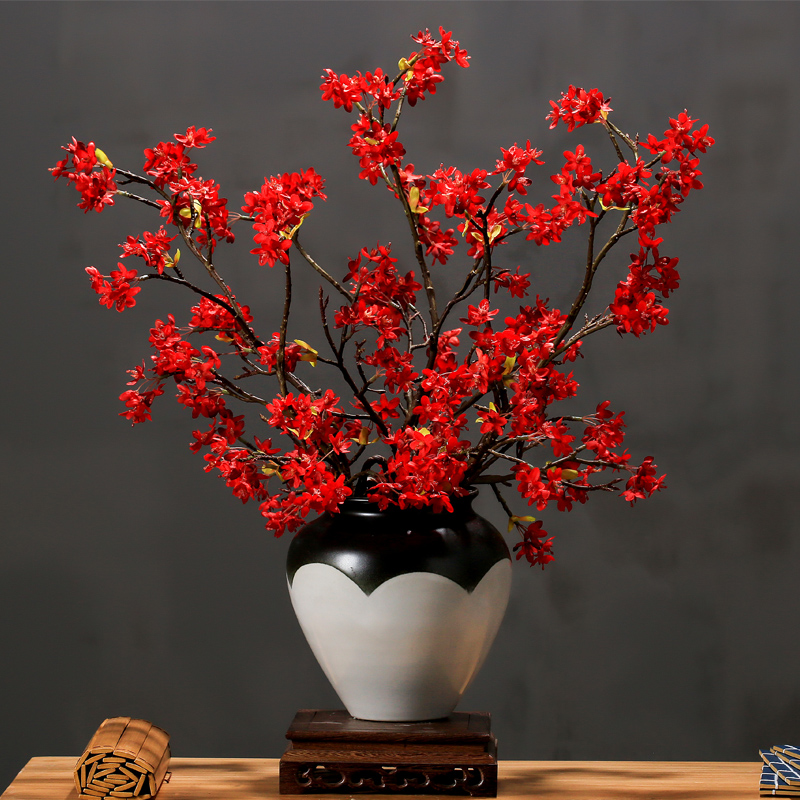 New Chinese Greeting Spring Flower Simulation Bouquet Drawing Room Dining Room Table Decoration Floral Swing Piece Plastic Fake Flower Silk Flower Potted Decoration