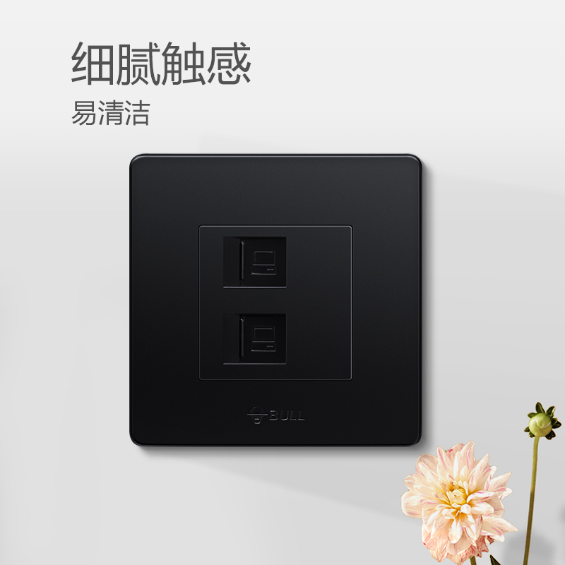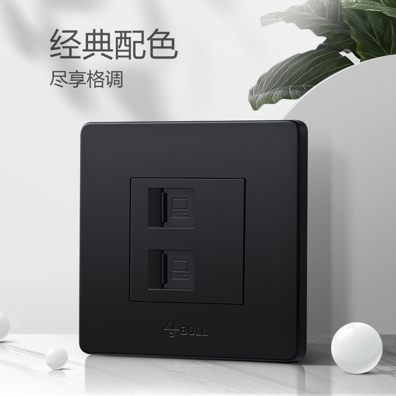 Bull socket flagship switch socket dual computer socket network panel dual port network cable socket panel G07 black