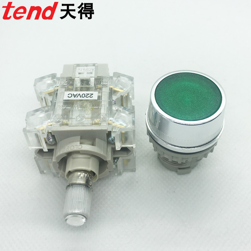 220V button self-reset TEND Tiande with light 24V green T2IFR7G-1C start stop switch 22mm