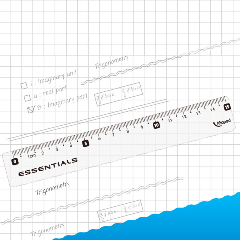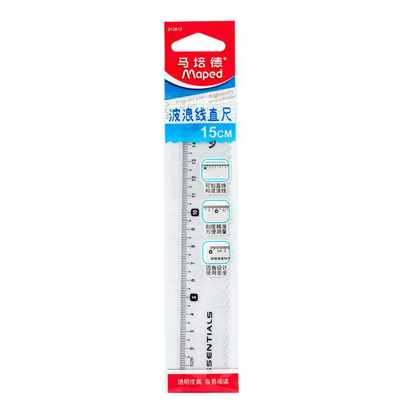 Maped ruler 15cm wave ruler transparent elementary school student stationery multi-functional simple examination scale drawing