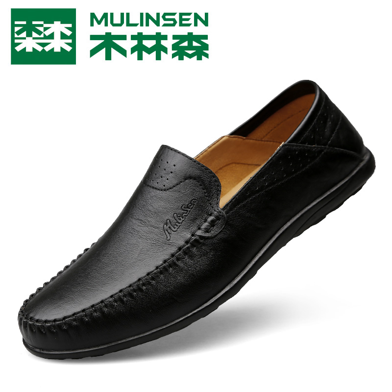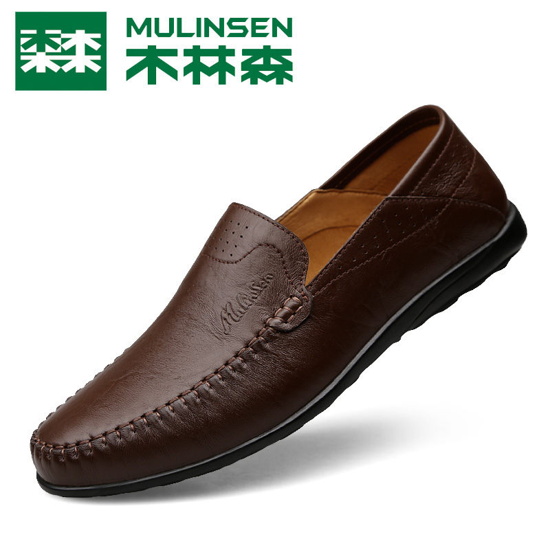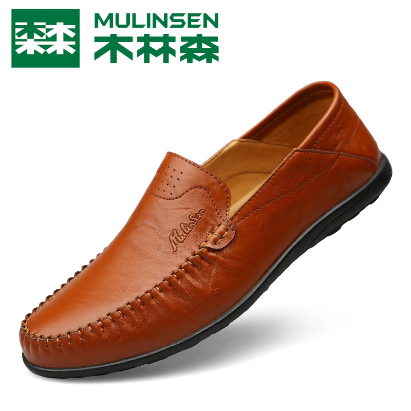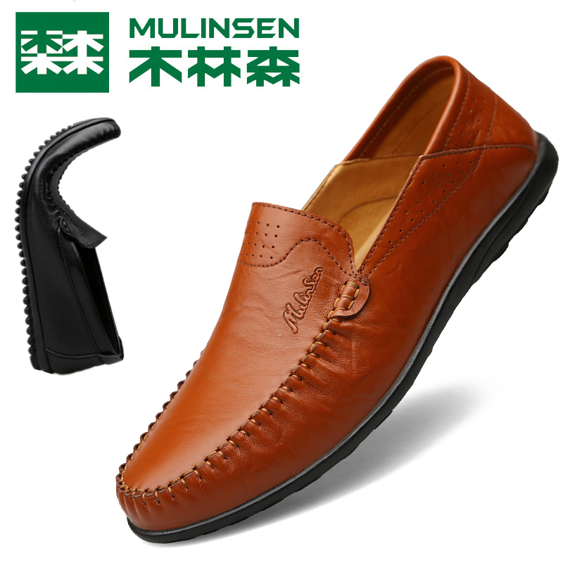 Mulinsen lazy beanie shoes men's autumn leather soft bottom breathable casual leather shoes men's middle-aged dad shoes