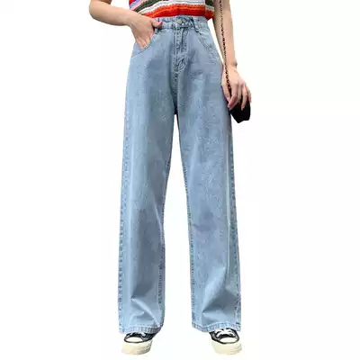 Jeans women's loose large size high waist fat mm straight tube wide leg pants autumn and winter hanging feeling nine points Harlan thin