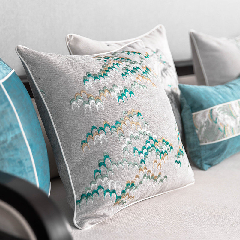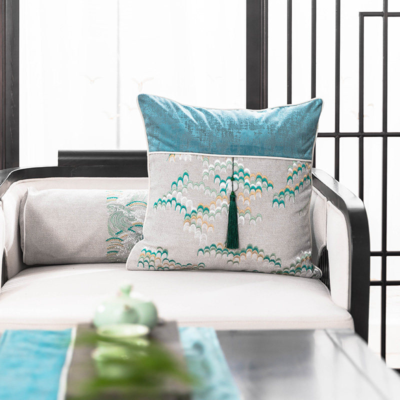 (Manyuan) New Chinese model house soft living room sofa ink embroidery design pillow cushion bed