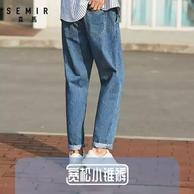 Senma jeans men's 2021 spring and autumn new loose cotton dad pants men's trendy brand small cone trousers medium blue