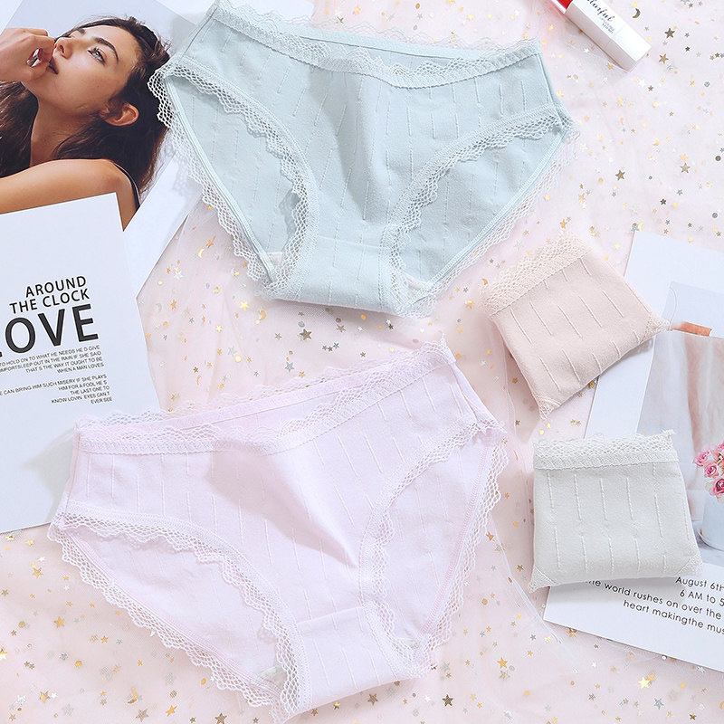 Panties Girls pure cotton 100% All cotton antibacterial mid waist No marks Large size Girl Cute Lace Sexy Japanese Triangle pants