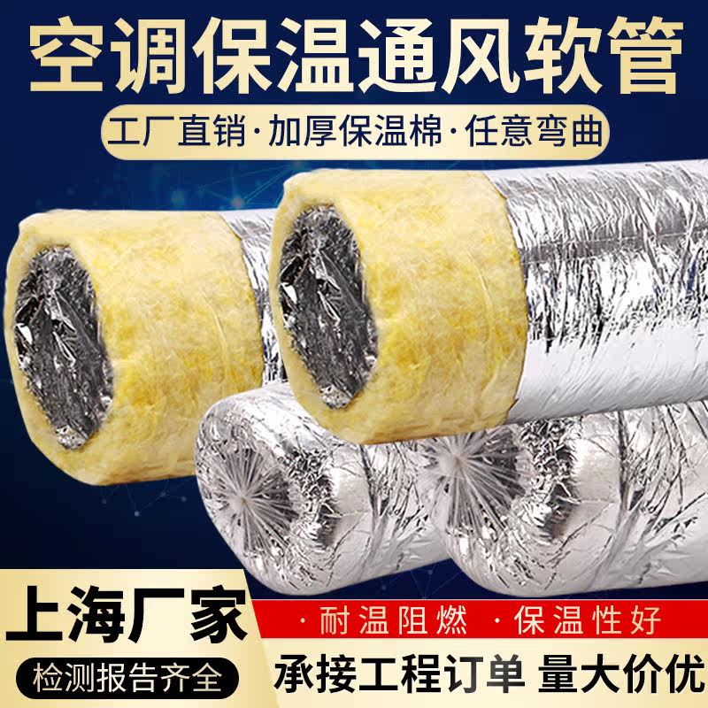 Central air conditioning insulation ventilation hose steel wire aluminum foil telescopic glass wool clip rib insulation exhaust hose rock wool pipe