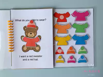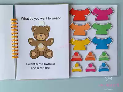 Little bear changing clothes color quiet book DIY English Enlightenment sticker book interactive book finished Mongolian early education