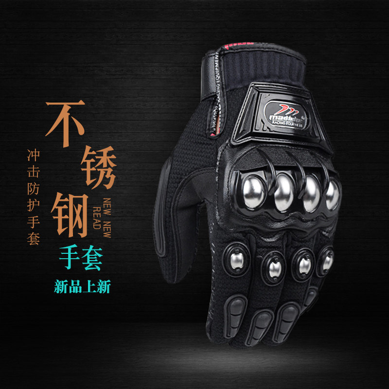 Autumn and winter motorcycle gloves stainless steel protective riding breathable knight motorcycle anti-fall anti-skid gloves