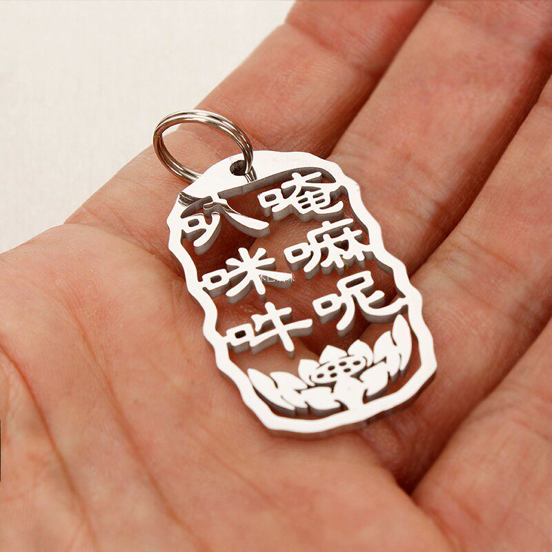 Car key chain pendant accessories stainless steel six-character mantra Nanno Amitabha Buddha amulet small gift