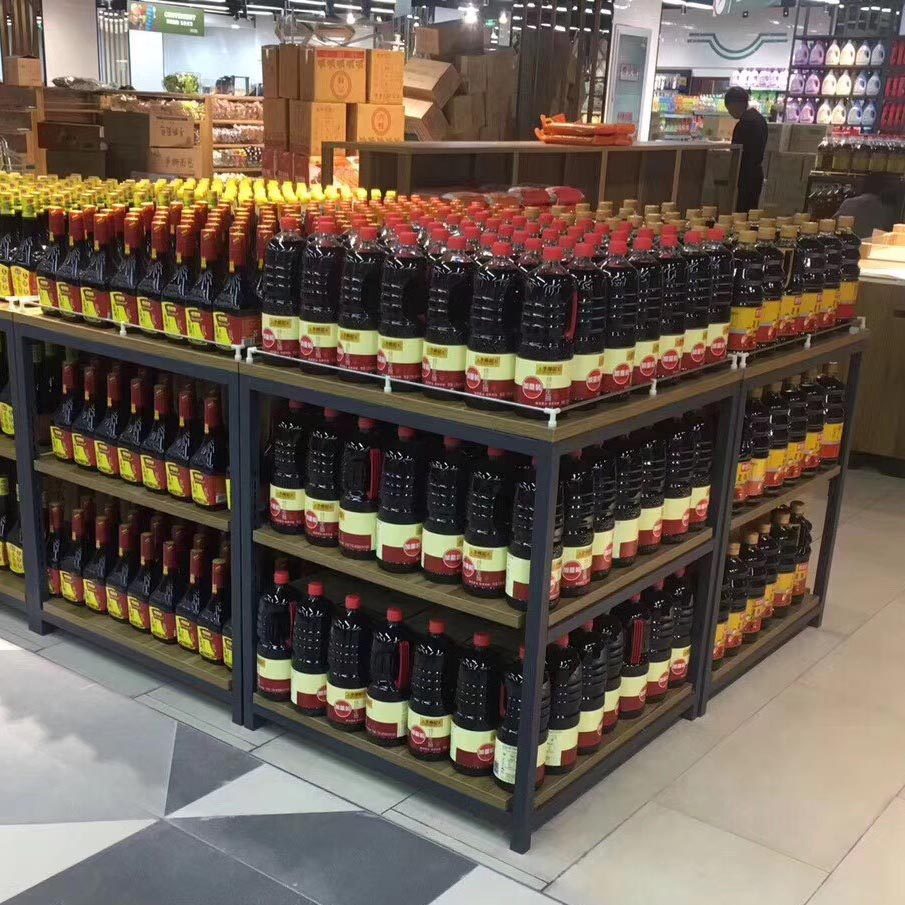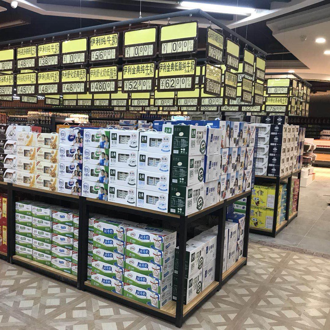Supermarket milk shelf shelf display rack Promotion table Steel wood display rack Float special table Imported food store rack