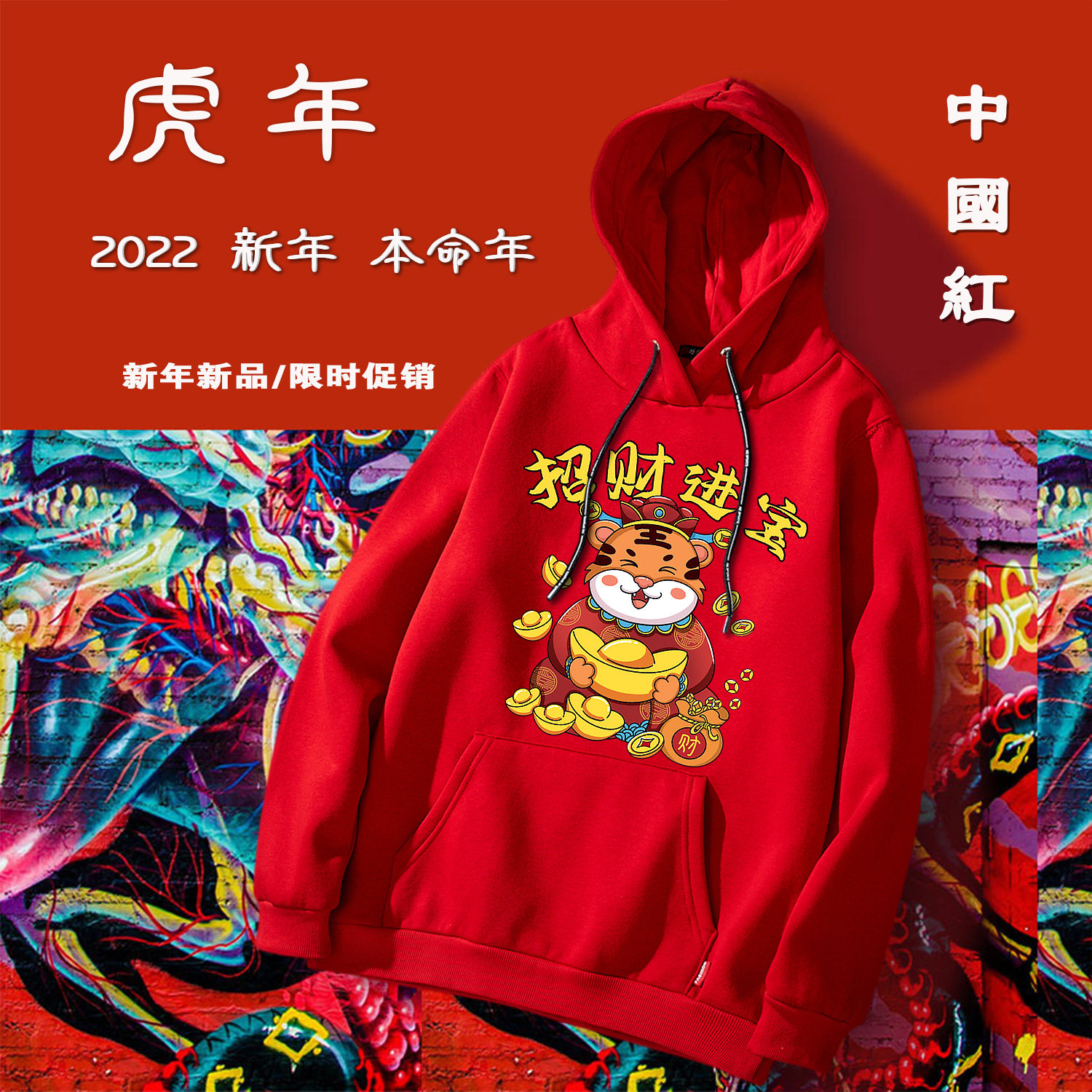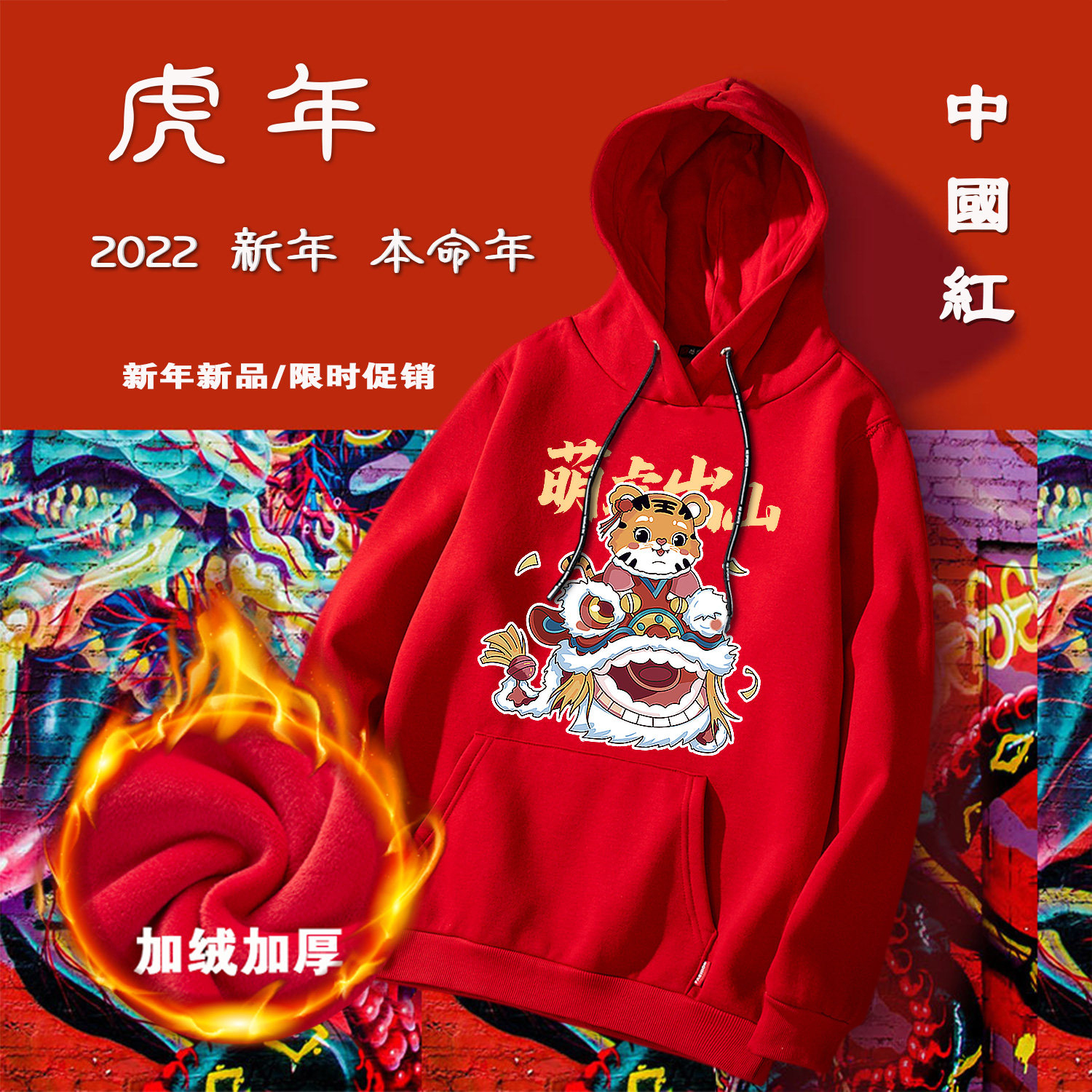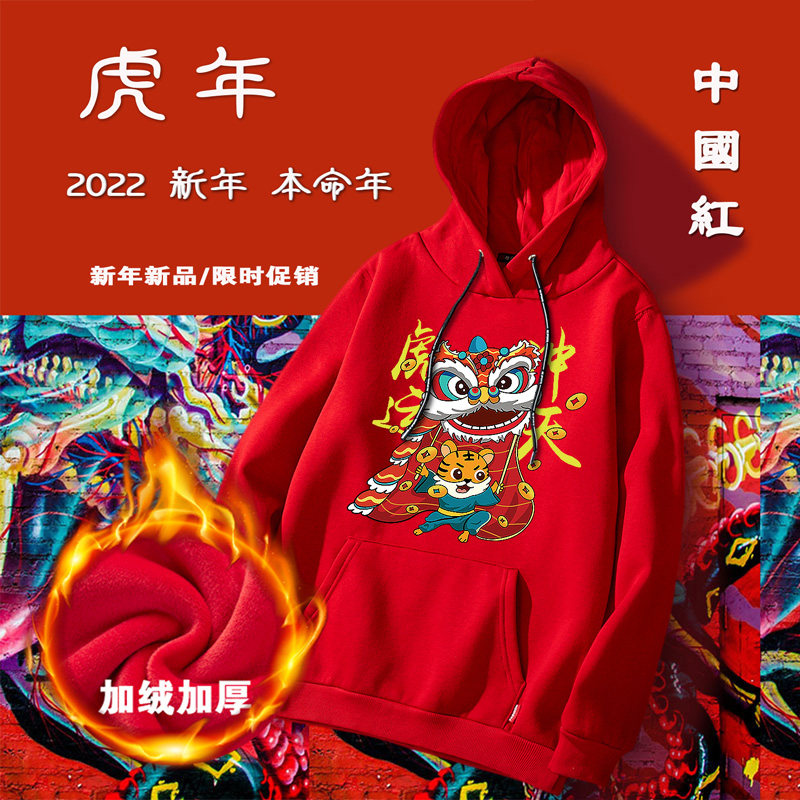 Tiger Year of the Year clothes 2022 New Year's State Chaos Red Lianhood Sports Shirt Men's and Lovers Coats Casual Spring Autumn
