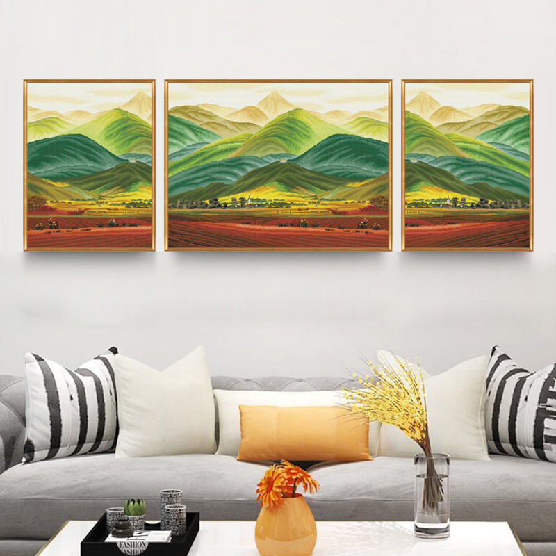 KS cross stitch 2019 new thread embroidery living room landscape European sofa triptych giant mountain oil painting full embroidery