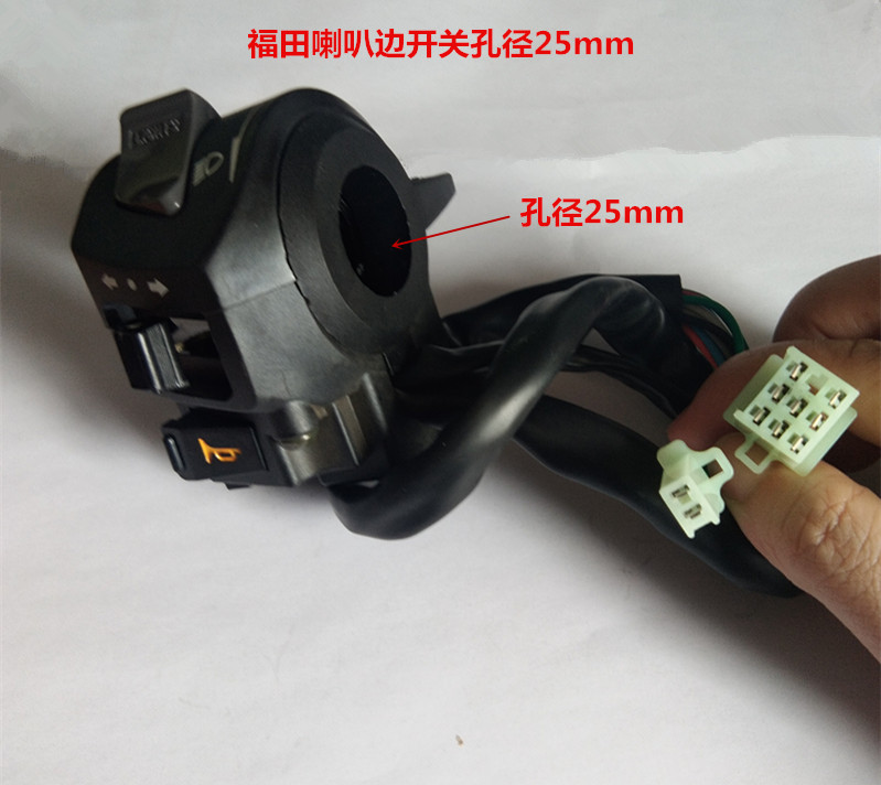 The aperture of the switch with horn on the left is 25mm. The aperture of the electric start switch on the right is 25mm. The aperture of the switch with horn on the left is 22mm. The aperture of the electric start switch on the right is 22mm.