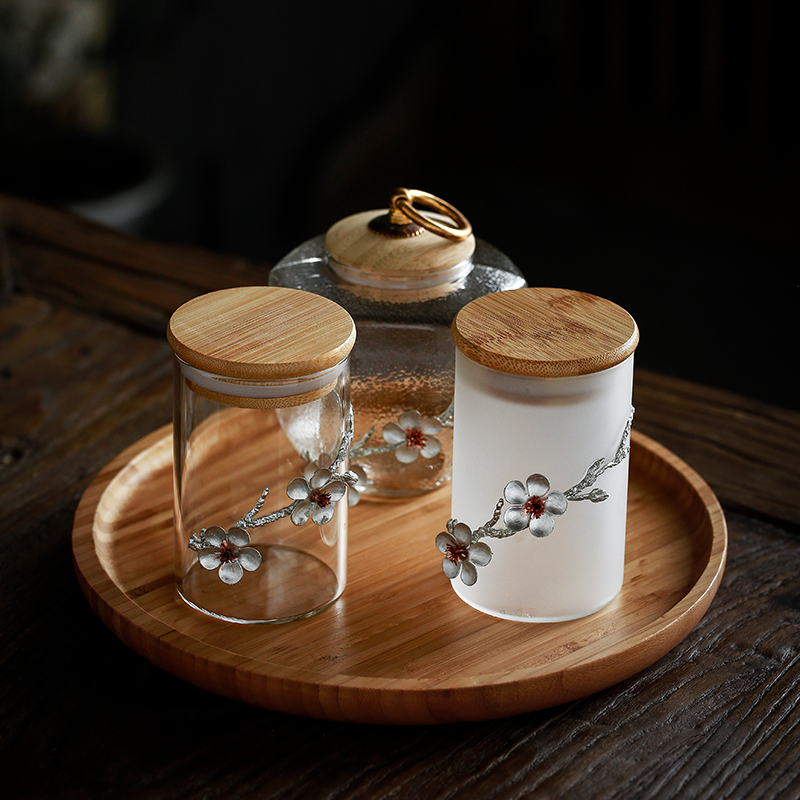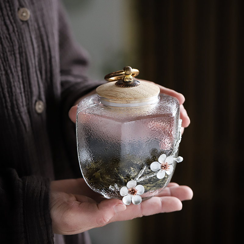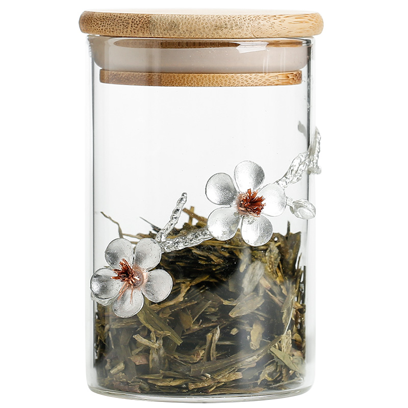 Household transparent glass tea sealed tank Small portable tea storage tank Food kitchen grain storage box Small bottle