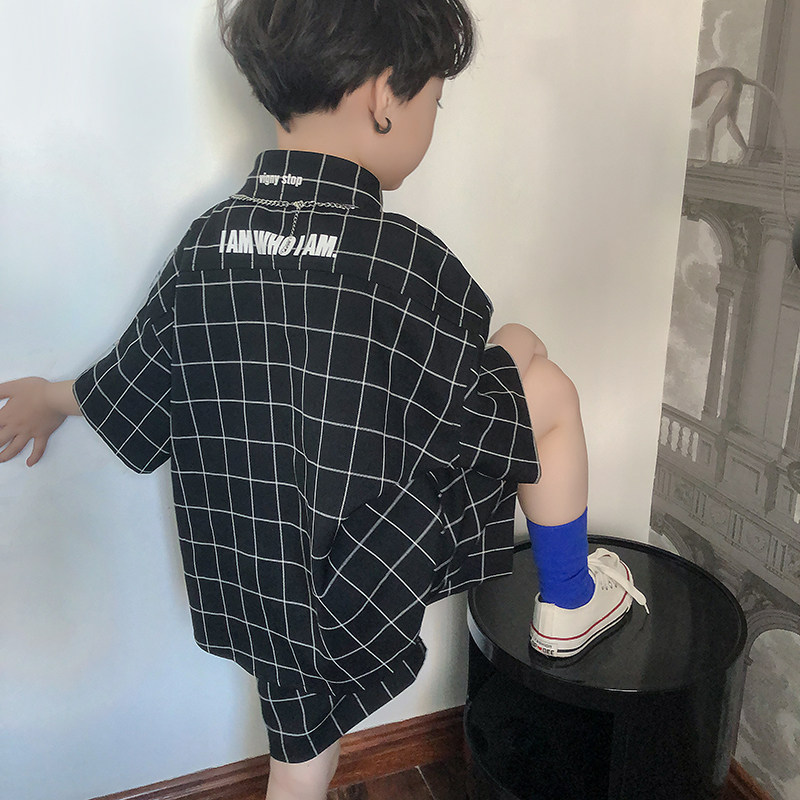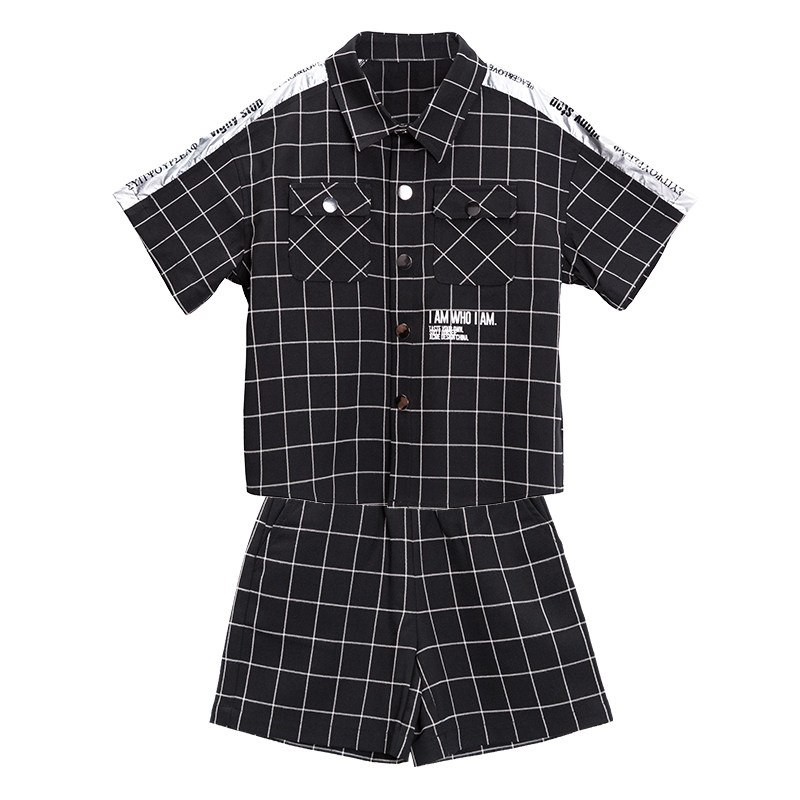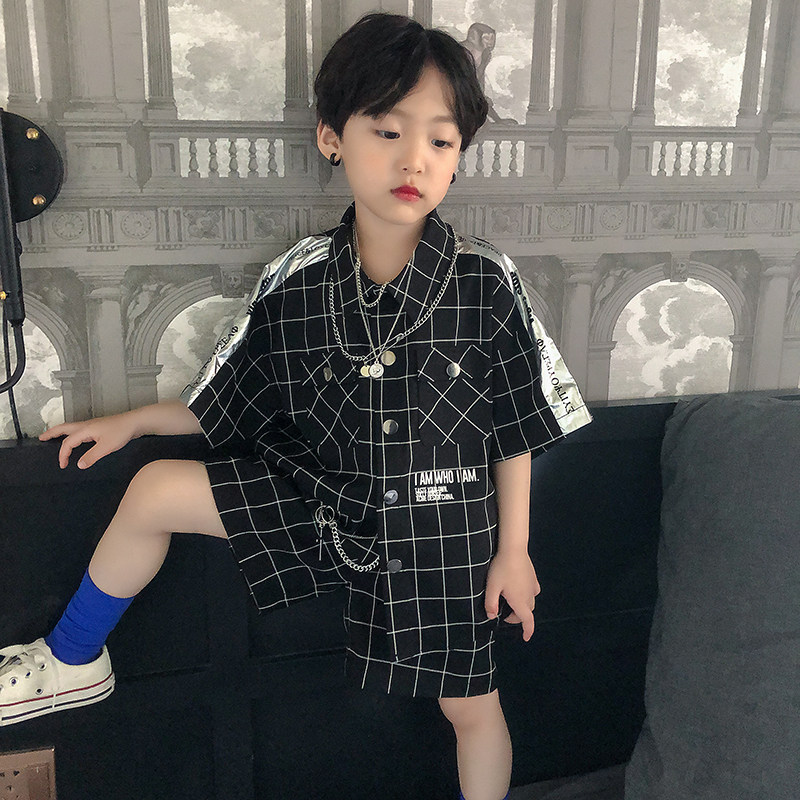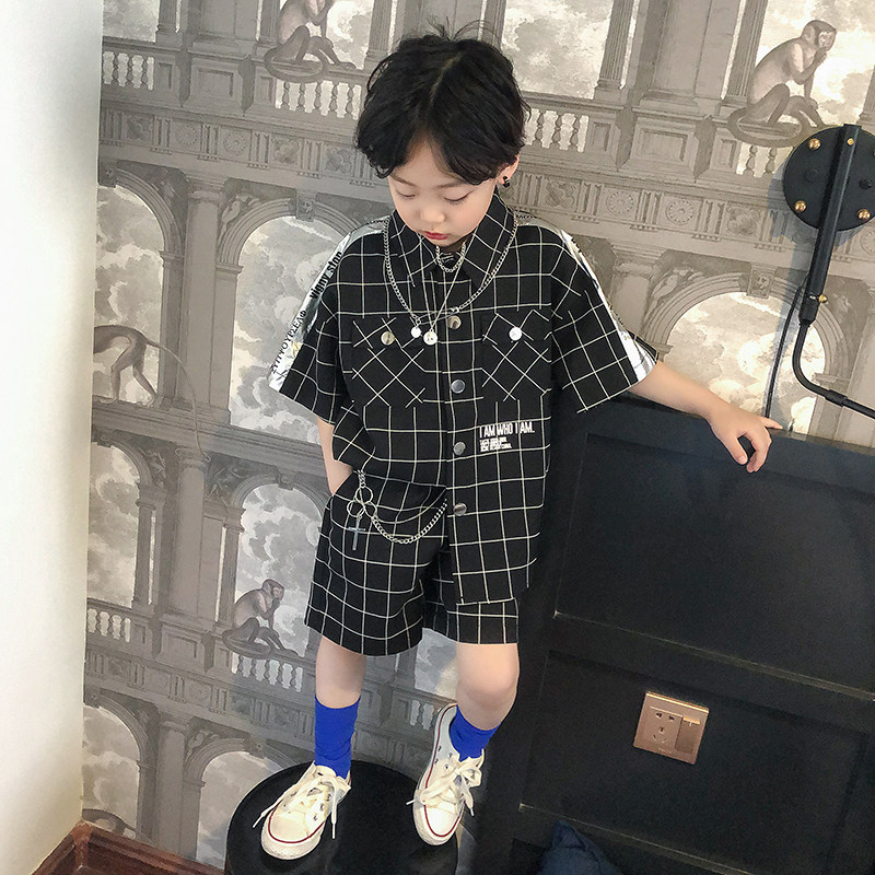ins grid street dance children's fashion brand set net red boys' clothes foreign summer fashionable Korean version two-piece set