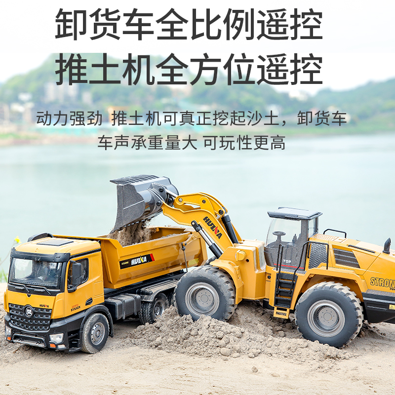 Sinks Engineering Cart Large Size Alloy Remote Control Pile High Machine Hydraulic Bulldozer Professional Shoveling Earth Car Loading Car Electric Toy