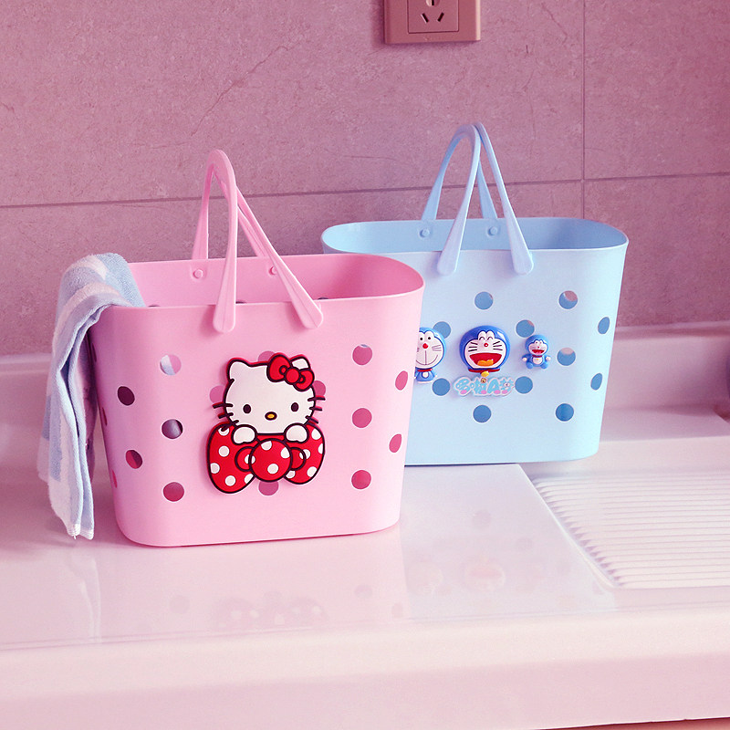 Cute Creative Cartoon Teenage Girl Hearts Bath Wash Containing Blue Containing Basket Portable Bathroom Containing Basket Bath Bath