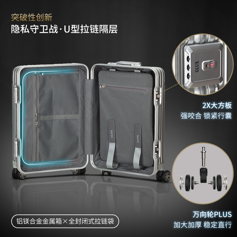 GLUX Japan Full Aluminum Magnesium Alloy Pull Lever Box Universal Wheels 20 Inch Case 24 inch suitcase Men and women suitcase