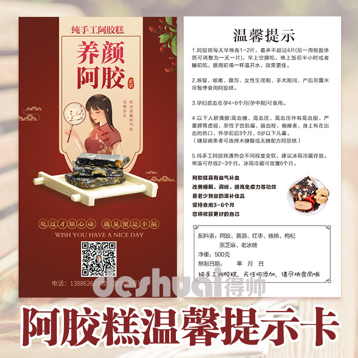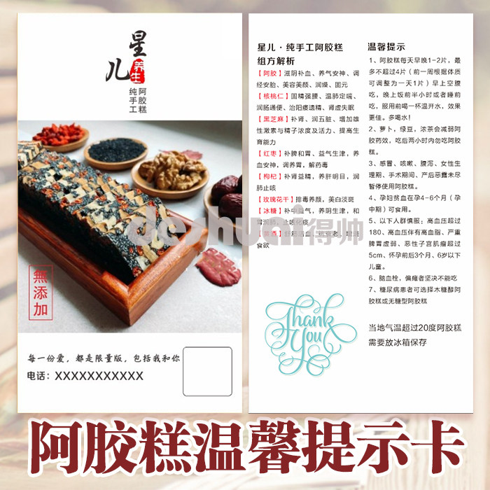 Donkey-ass Rice Cake After-sales Service Cozy Reminder Card Efficacy Introduction Card Thanks Card Edible Brochure production Print