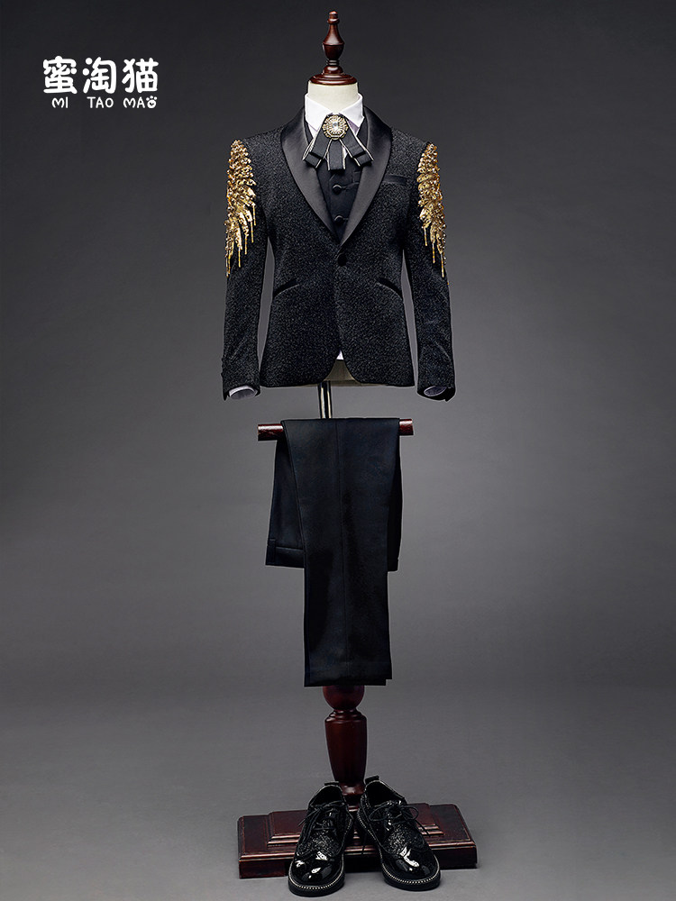 Black 3-piece set (jacket, vest, pants) Plush black 5-piece set (jacket, vest, plush shirt, bow tie) Red bow tie, black 5-piece set (jacket, vest, pants)