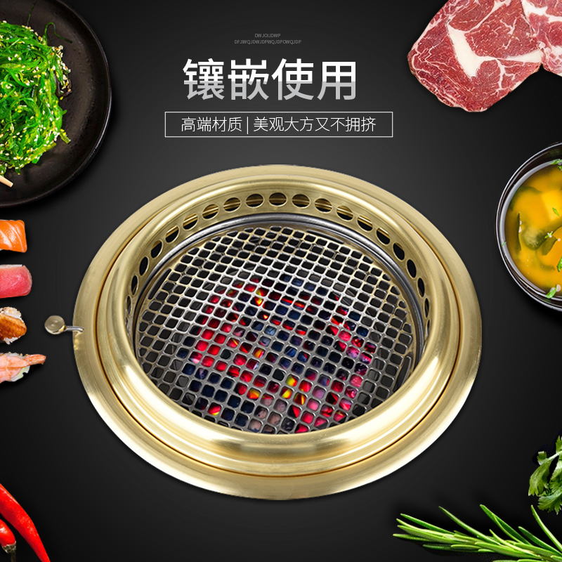 Japanese carbon oven circular commercial discharge of tobacco barbecue Korean charcoal oven inlaid smoke-free charcoal barbecue