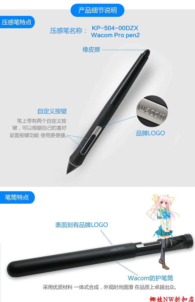 WacomDTH-W1620H Press Sensation Pen New Imperii Dress Pen 8192 Grade Pressure Sensation KP-504 Press Sensation Pen