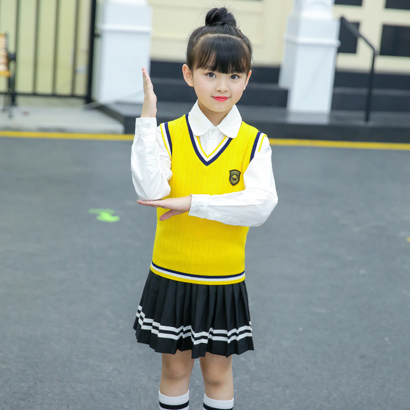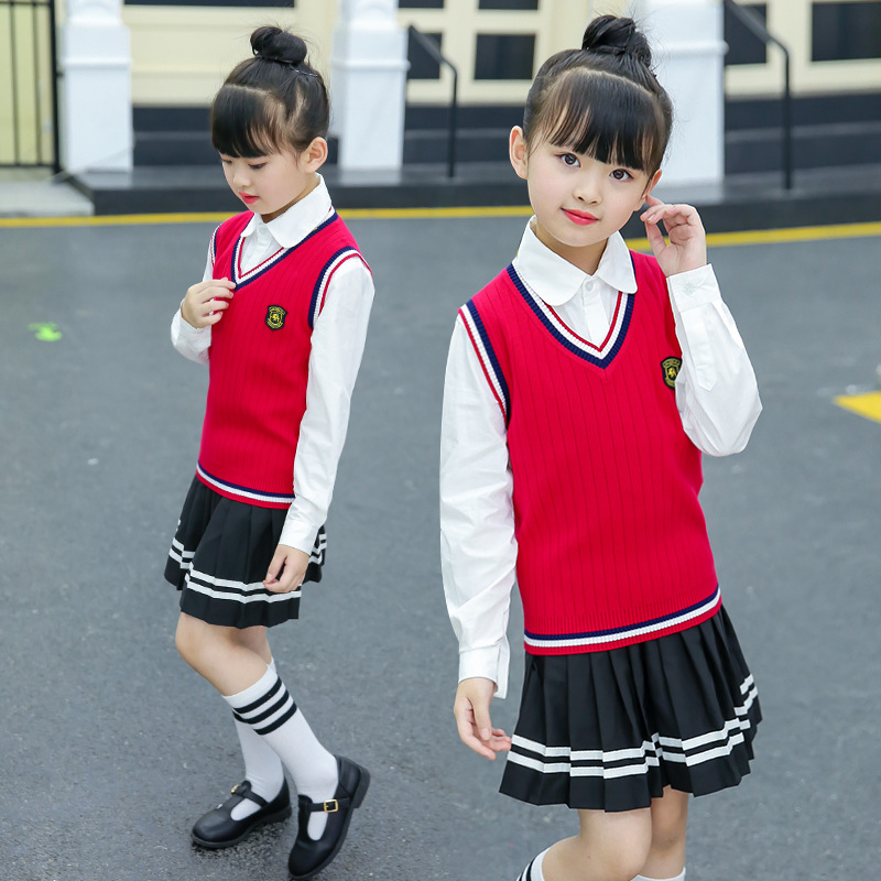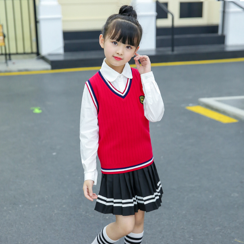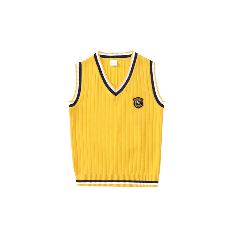 Children's knitted vest spring and autumn sweater 8 students V-neck vest 15 years old 9 boys and girls sweater 4 red, yellow and Tibetan blue