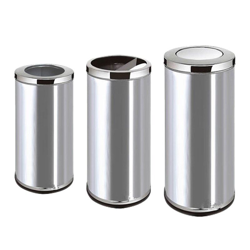 Stainless Steel Trash Can Mall Hotel Fruit Leather Case Lobby Cylinder Square Clamshell Vertical Dustbin Outdoor