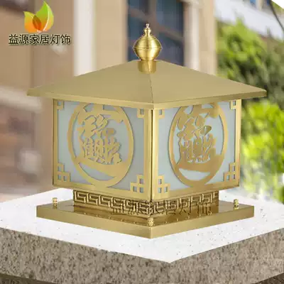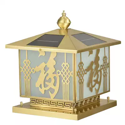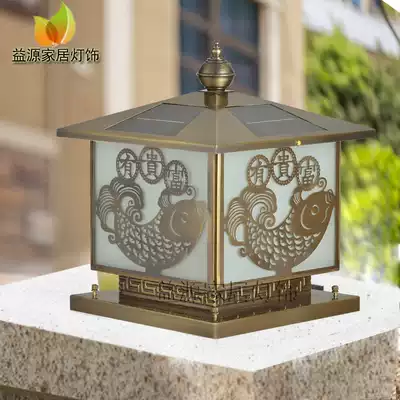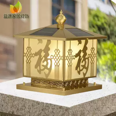 Yiyuan pure copper solar column head lamp outdoor wall lamp waterproof rust-proof lamp bronze all copper Black