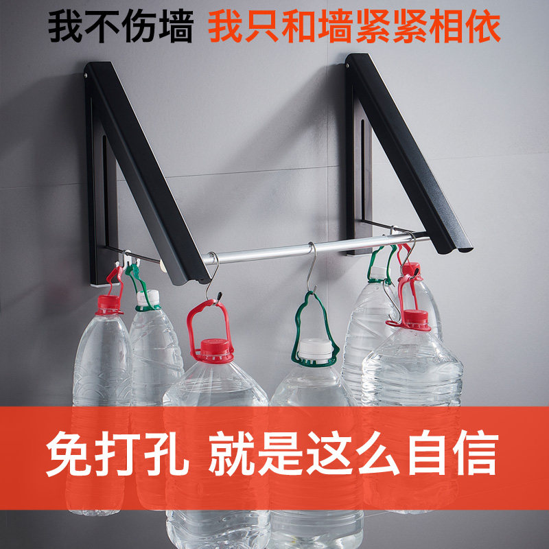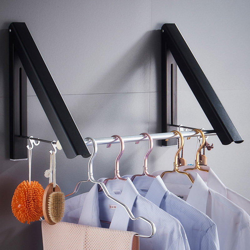 Bathroom powder room invisible clothes rack Mini small foldable shrink telescopic rod Indoor wall-mounted free hole