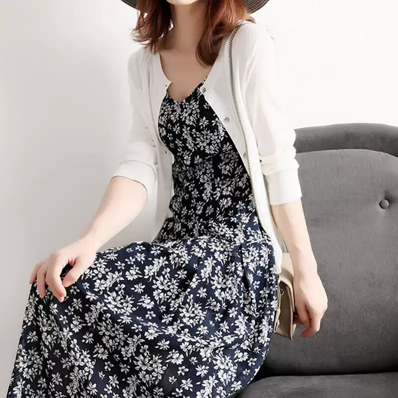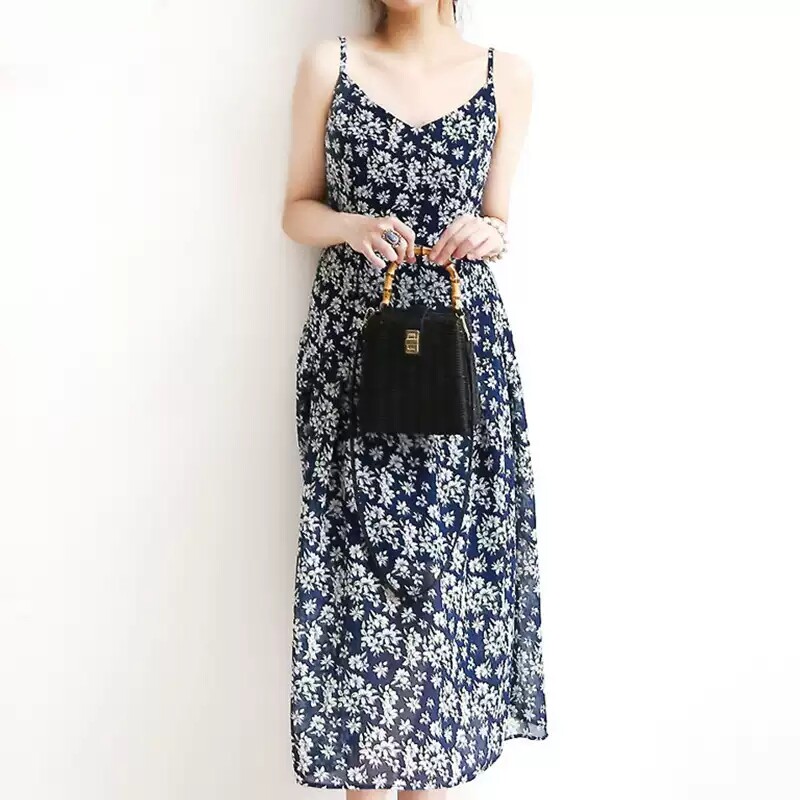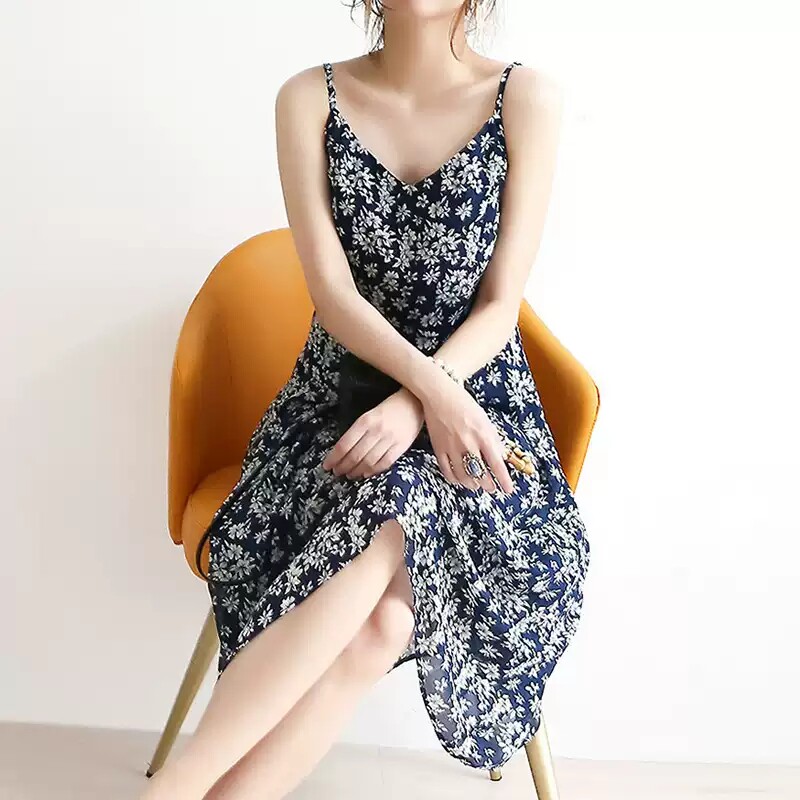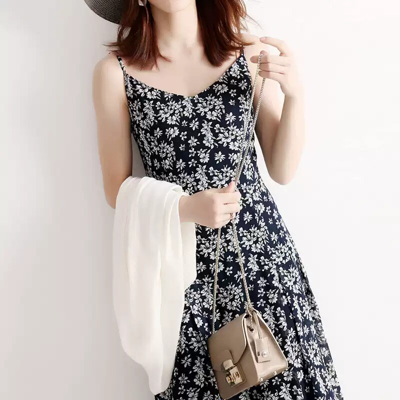 2022 new summer dress Western style fairy suspender skirt is very fairy floral daisy chiffon slim dress