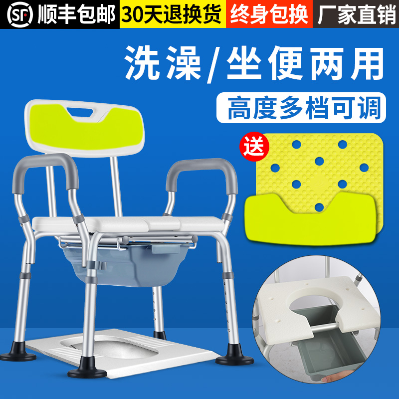 Multi-functional bathing chair (sitting) with anti-slip backrest cushion Cushion Lift version (with bedpan) bath for sitting and defecating with a folding and folding type multifunctional chair bedpan bath for a second use with a new lift