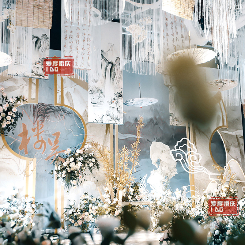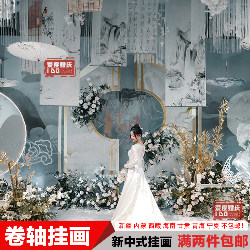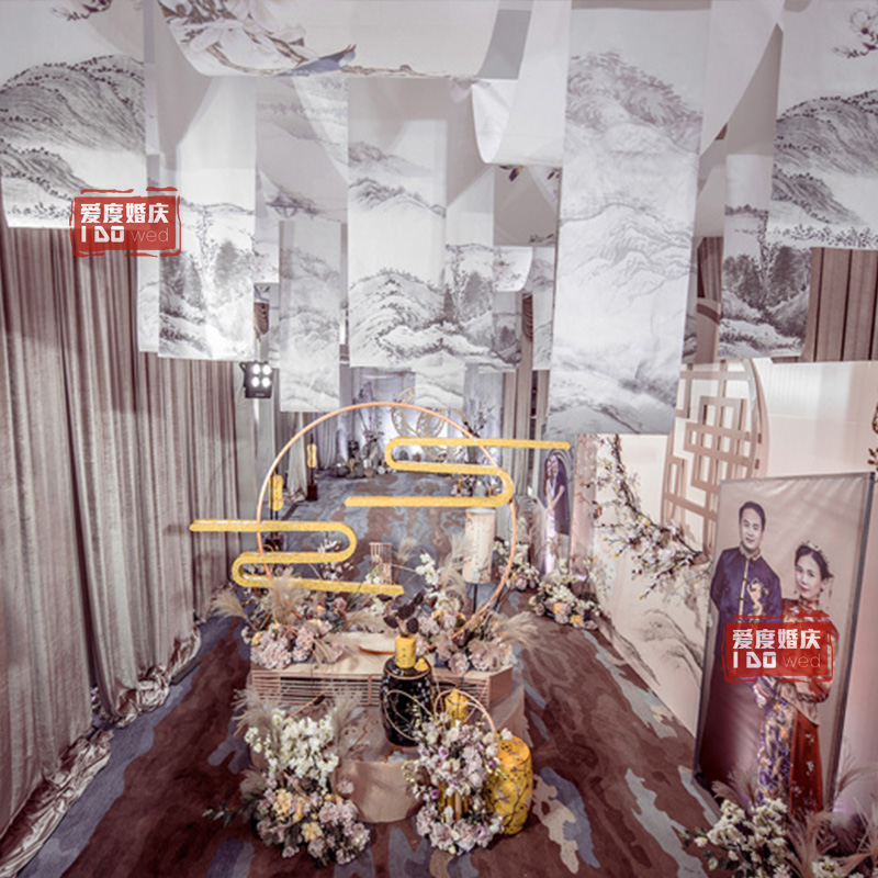 New Chinese Wedding Props Scroll Painting Wedding Celebration of Wedding Celebration with Classical Floating Top Water Ink Painting Cloth stage Floating Yarn Decoration