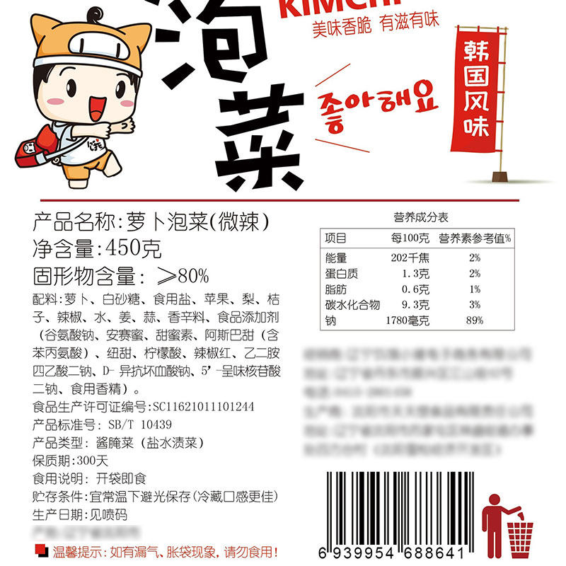 Hungry Piglet Robe sauerkraut 450g Korean flavored sour spicy Roof block Leftover Food Handmade small pickles