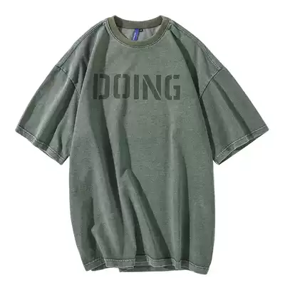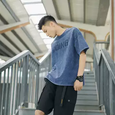 Summer Japanese retro T-shirt men Street trend heavy wash old short sleeve men loose leisure youth half sleeve